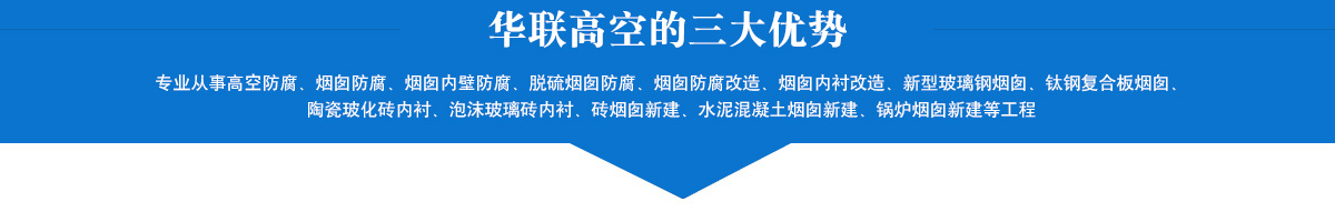 主要承接高空防腐、煙囪防腐、煙囪內(nèi)壁防腐、脫硫煙囪防腐、煙囪防腐改造、煙囪內(nèi)襯改造、新型玻璃鋼煙囪、鈦鋼復(fù)合板煙囪、陶瓷玻化磚內(nèi)襯、泡沫玻璃磚內(nèi)襯、磚煙囪新建、水泥混凝土煙囪新建、鍋爐煙囪新建、鈦鋼煙囪新建制作安裝等各項(xiàng)業(yè)務(wù)